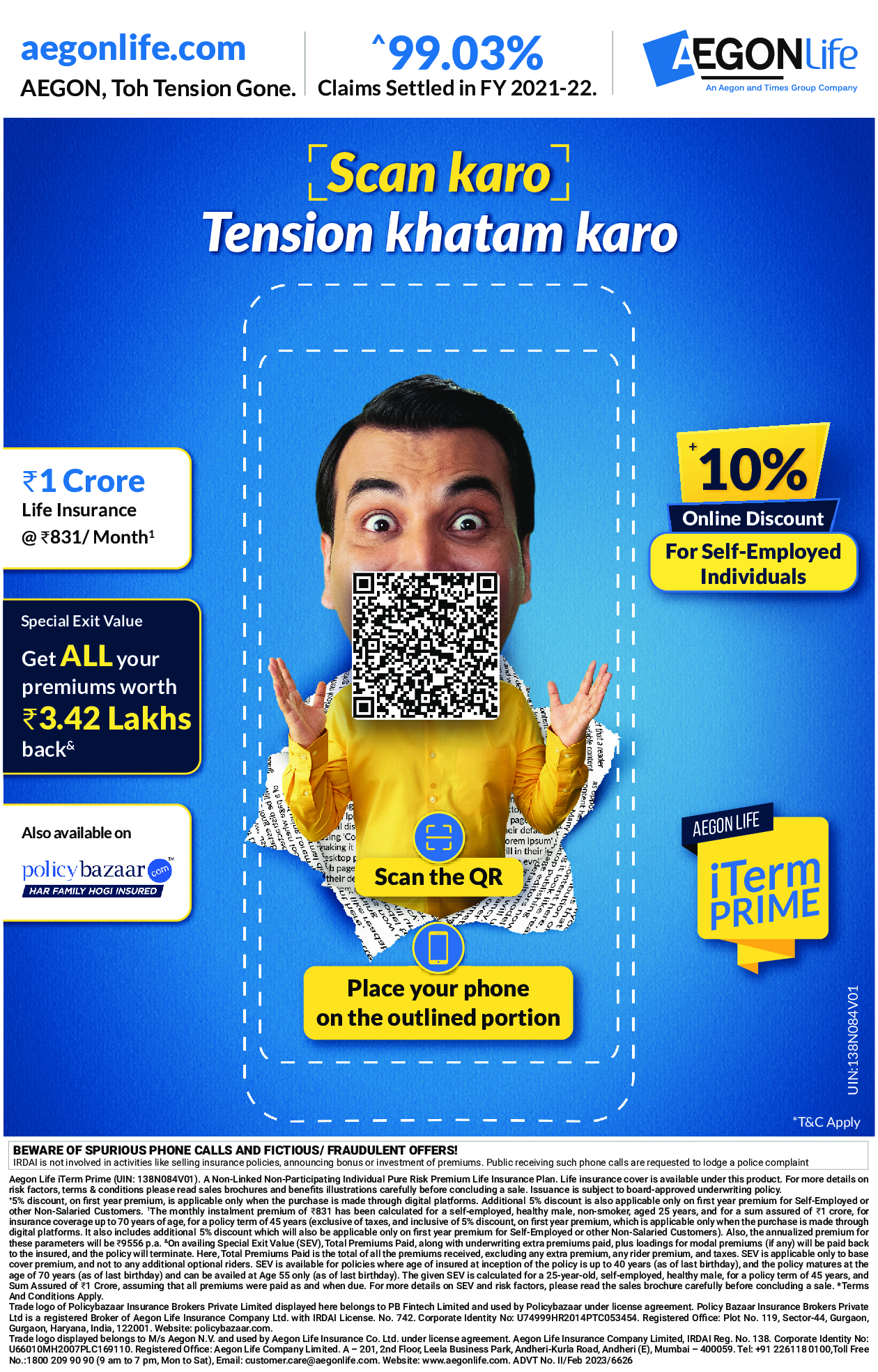 iTerm Prime Insurance plan is Aegon Life’s flagship term insurance product, catering to the needs of self-employed individuals.  The company is offering a special 10% discount (5% discount in addition to a 5% online discount for all) on the 1st-year premium. Designed with Emerging India in mind, iTerm Prime offers a minimum life cover of ₹25 lakh, with no upper limit, making it accessible to a majority of the population with different insurance needs. The product can be purchased on Aegon Life’s website (www.aegonlife.com) and through its partners; the buying process is completely paperless and requires zero documentation or uploads.