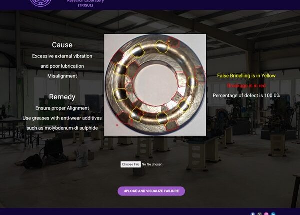 Inspecting mechanical elements is vital for OEMs, process industries, small-scale industries, assembly lines, and application engineers. Currently, these inspections are time and effort-intensive and often inaccurate. However, extensive human intervention often leads to missed defects and delays in generating failure reports. BearingVisionAI™ is an AI-integrated, user-friendly app that quickly and accurately detects and quantifies bearing failures. Users simply upload an image of the surface to be inspected. The app identifies the type of failure and quantifies the damage within seconds. This makes the inspection process effortless. The app can be customized as per the requirement to detect the failures of any mechanical element.
