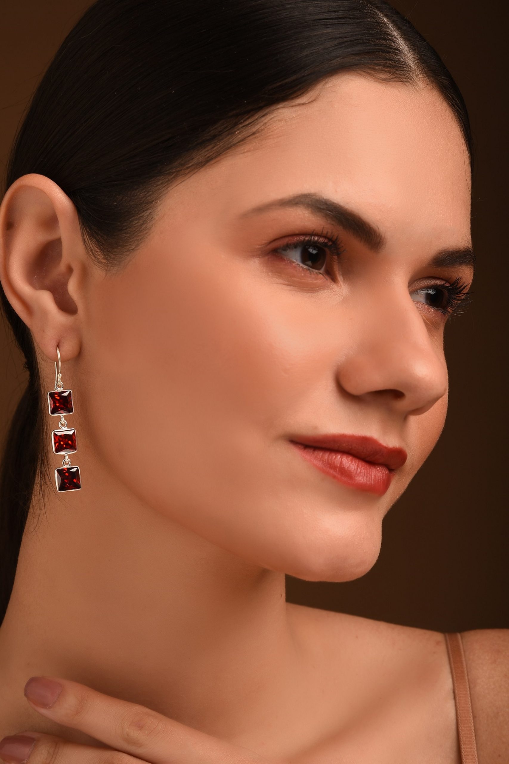 MOONLIT TALES– Red Sterling Silver Earrings With Zircon, INR 2100- Elegant pair of handcrafted sterling silver earrings with Zircon in hues of crimson, to match or contrast with your outfits