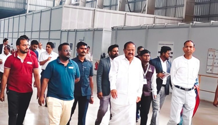 Former Vice President M. Venkaiah Naidu applauds the infrastructure at Wadi Surgicals in AMTZ, Visakhapatnam