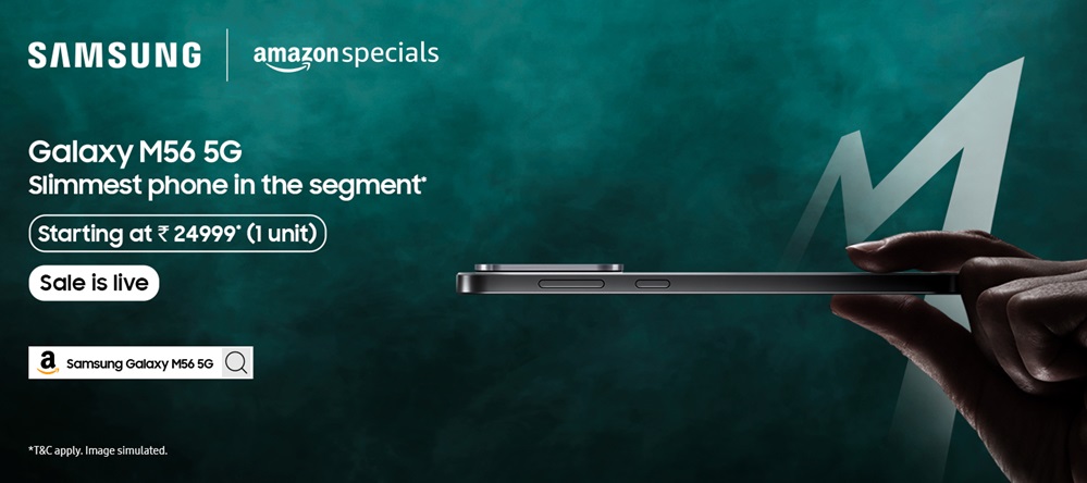 Bengaluru: Samsung, India’s largest consumer electronics brand, today announced the sale of Galaxy M56 5G, the slimmest smartphone in its segment. The latest addition to the Galaxy M series line-up offers users a superior smartphone experience with Gorilla Glass Victus+ protection on both front and back, a 50MP triple camera with OIS and 12 MP front HDR camera and advanced AI editing tools. Starting today, Galaxy M56 5G will be available on Amazon, Samsung.com, and at select retail stores.