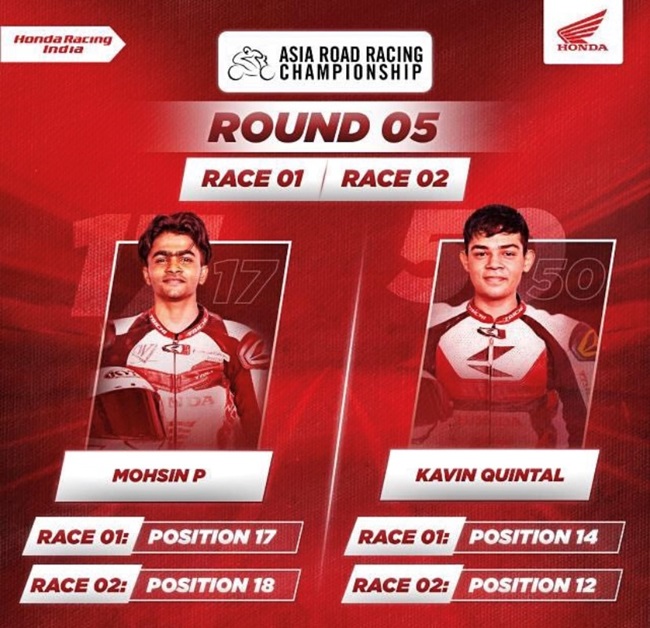 “The overall round was very competitive, and our riders did really well on the track. I am happy that Kavin and Mohsin gave their best and finished the race without any mishaps. They kept their spirits high until the very end and exhibited their racing prowess. In the last race, they did a great job, earning 4 points for the team. After looking at how they performed in Round 5, we will curate our racing strategies accordingly to do even better in the final race in Thailand. We believe in learning from our mistakes and help our riders get even better with proper guidance from our professional Honda instructors.”