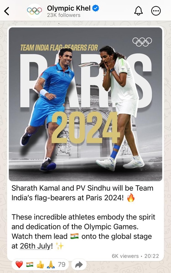 The International Olympic Committee (IOC) has kicked off a new Olympics WhatsApp Channel in India ‘Olympic Khel’ to share real-time updates and information with fans ahead of the start of the summer games. People can see exclusive content shared on the Channel including real-time updates, Olympics trivia and behind the scenes content with Indian sports stars and athletes gearing up for the event.