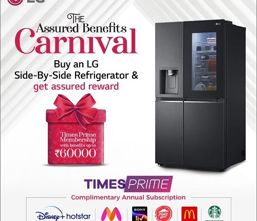 New Delhi: Two giant consumer brands, LG and Times Prime today announce their coming together for a strategic partnership for their “Assured Benefits Carnival,” where the electronic giant will gift Times Prime Annual Membership to its customers on purchase of any “Side by Side Refrigerator”.