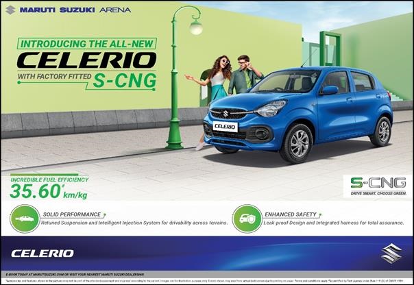 New Delhi : Maruti Suzuki India Limited, today announced the launch of the CNG variant of stylish and urban All-New Celerio. The introduction of the All-New Celerio with S-CNG technology is aligned with the company’s commitment to further strengthen its growing green vehicles portfolio in India. Powered by next-generation Dual Jet, Dual VVT K-Series 1.0L engine, the All-New Celerio with S-CNG technology delivers an incredible mileage of 35.60 km/kg* and has a CNG tank capacity of 60 litres (water filling capacity). The All-New Celerio S-CNG is factory fitted and offers optimum performance, ensuring enhanced safety, unmatched convenience, and great fuel-efficiency.