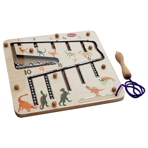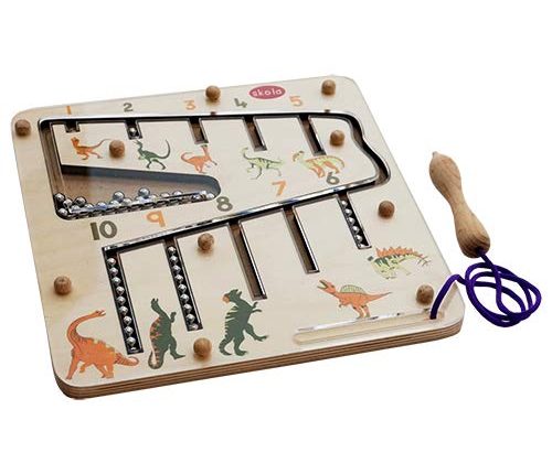 Skola Dino Number Maze: Children find the concept of a magnetic pen to be quite exciting and interesting as they use it to guide the balls through the maze. They learn how each number is related to a certain amount by providing the hungry dinosaurs with the appropriate number of balls to feed them. Children also like differentiating the dinosaurs on the board, which makes this toy the ideal blend of entertainment and education.