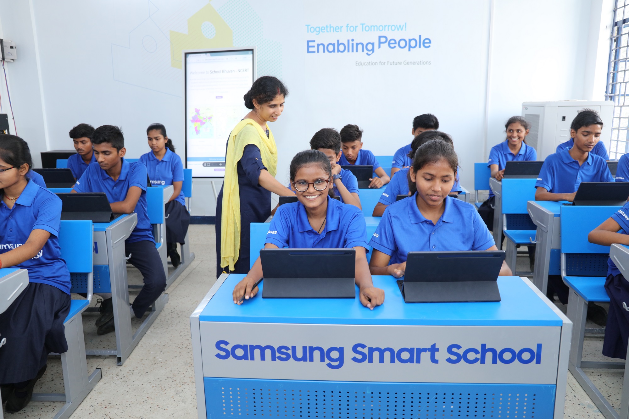 The Samsung Smart School program aims to create young leaders of tomorrow by giving less-privileged students in India access to the benefits of digital education and its own transformative innovations under Samsung’s vision of ‘Together for Tomorrow! Enabling People’.