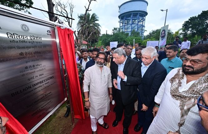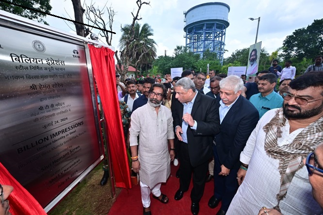 Bengaluru: Tata Steel today dedicated ‘Billion Impressions’, a new art installation made entirely of Tata Structura steel tubes, to the people of Ranchi. The installation, housed in Ranchi’s Bhagwan Birsa Munda Smriti Park, was inaugurated by the Honourable Chief Minister of Jharkhand Shri Hemant Soren in the presence of T. V. Narendran, CEO & Managing Director, Tata Steel, and other senior officials from the state government and Tata Steel.