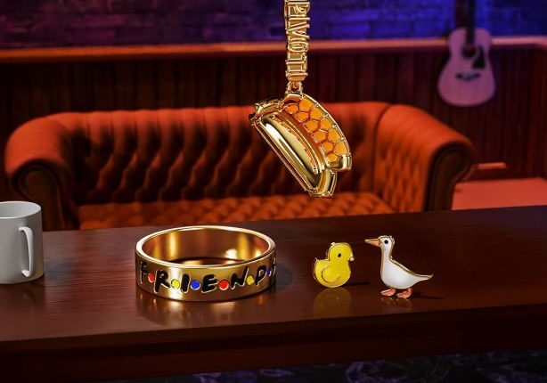 Crafted in 9KT & 14KT gold, enamel, and diamonds—the collection offers 30+ designs that spark a wave of nostalgia with designs inspired by the iconic elements of the sitcom — motifs such as the lobster, the couch, the smelly cat, the yellow doorframe, Joey’s pizza.